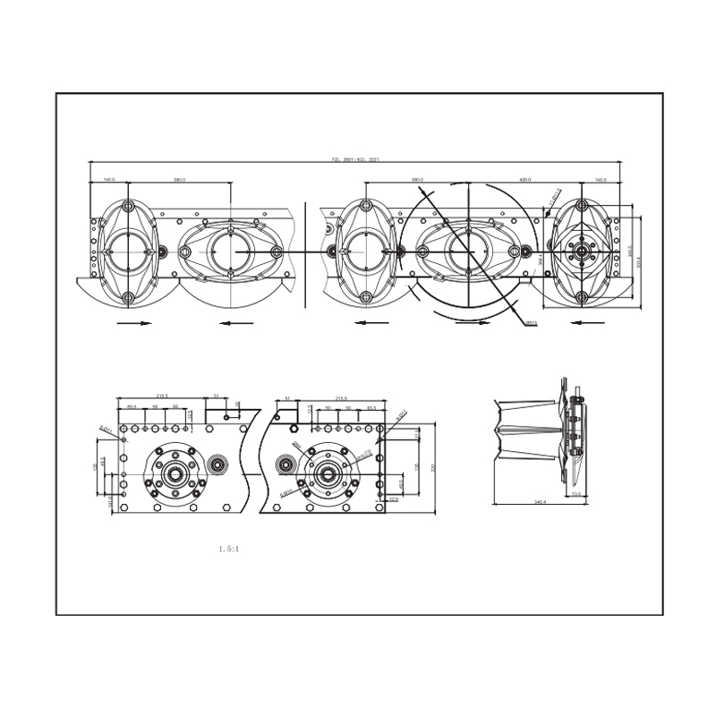 Denna produkt används för växellådans skärbalk av självgående lokomotiv och gräsklippare. Det härstammar från europeiska och amerikanska designkoncept och matar in kraft genom lokomotorn. Överföringens externa växellåda driver den cylindriska växeln till skärhuvudet. Skärstrålen antar en full växelstrukturdesign och utgångshastigheten är 3000 varv / minut. Överföringsbruset är lågt och kvaliteten är mer stabil och pålitlig; Denna skärstång kan kombineras till olika modeller för att bilda en större bredd. Arbetsbredden kan nå 3,2 meter till 5,5 meter och anpassar sig till olika behov. Samtidigt kan gräsmattan och utplattningsfunktionen också realiseras. Det används för att skörda alfalfa, safflor och andra grödor. Platta stjälkarna hjälper till att absorbera vatten och sprida dem för torkning.
