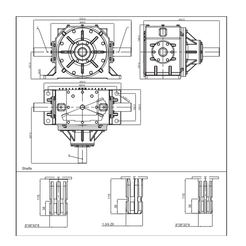 Växellådan matar in kraften genom maskinens främre vertikala låda eller traktorn ökar rotationshastigheten och överför kraften till den krossande skäraxeln genom transmissionsaxeln och bältet. Genom dubbelsidig utgång kan maskinens driftsbredd nå 3,5 meter till 6,5 meter. Samtidigt kan det också inse den sekundära krossningsfunktionen för att uppnå en bättre krossande effekt på grödor. Maskinen krossar skördetrån och återvinner sedan förpackningar och återanvänder den, eller returnerar den direkt till matningsstandarden, eller returnerar den direkt till fältet för att ruttna för att öka landets fertilitet. Denna typ av växellåda kommer att användas i krossanordningen för olika utrustning som små fyrkantiga balare, dammavlägsnande små fyrkantiga balare, runda balare, halm returmaskiner, etc.